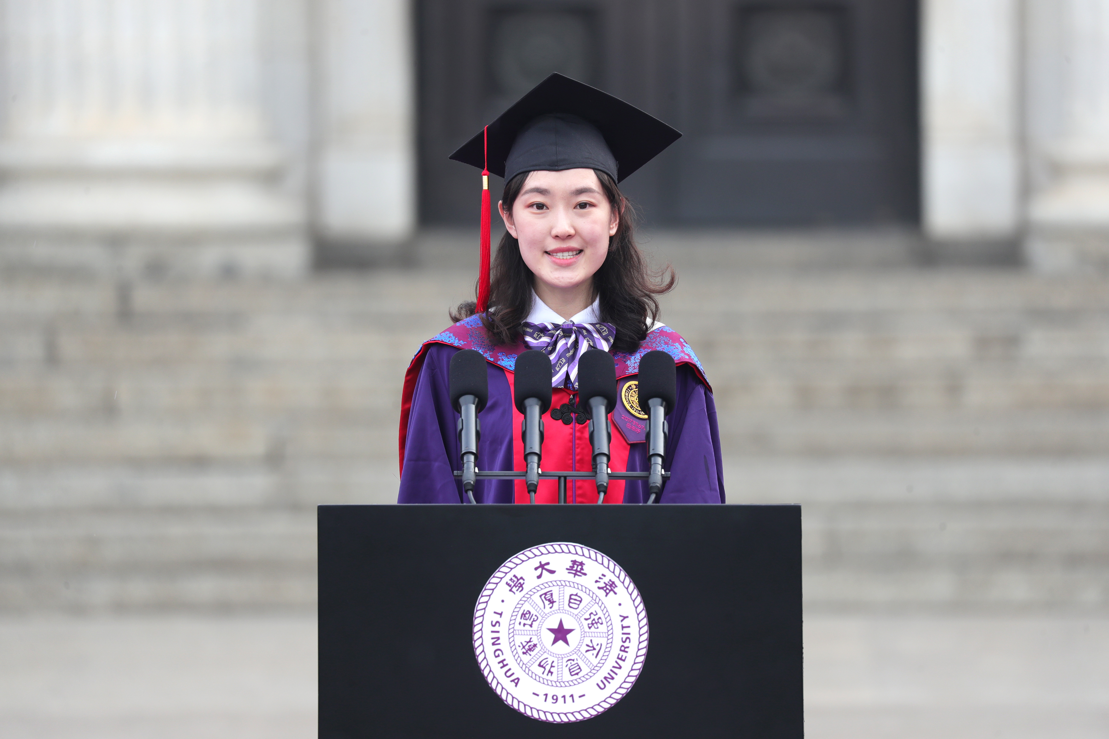 Yue Siyu, a doctoral graduate from the Department of Earth System Science, gave her commencement remarks as the doctoral student representative.