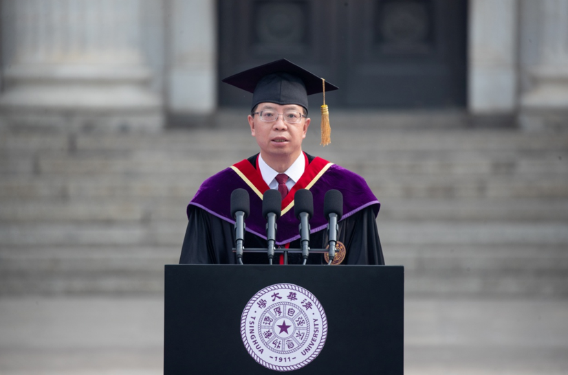 Tsinghua University President Wang Xiqin delivered a speech during the ceremony, extending his warmest congratulations and best wishes to all the graduates.