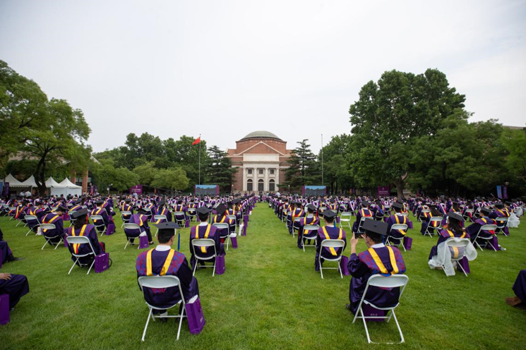 Tsinghua graduates gathered at the main commencement ceremony venue outside the Tsinghua Auditorium, and nine other outdoor viewing points on campus, to watch their commencement ceremony and receive their hard-earned degrees while maintaining physical safety standards.