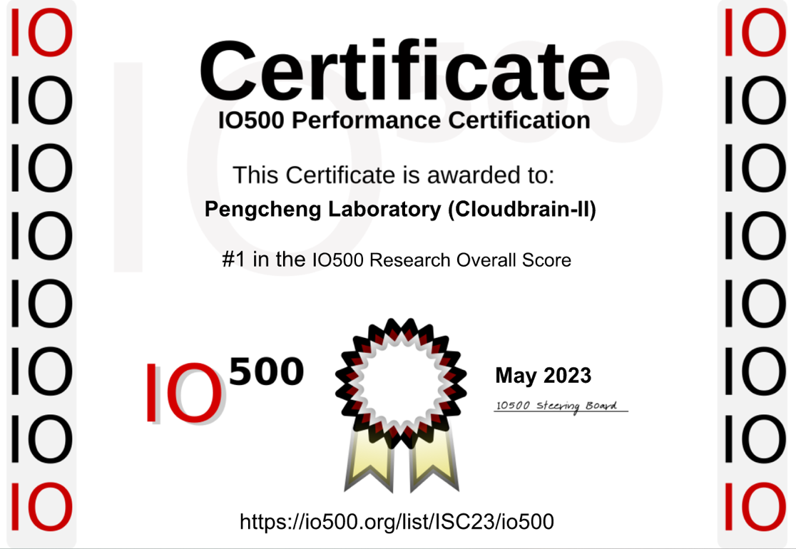 The Pengcheng Cloudbrain-II storage system, developed jointly by the Department of Computer Science and Technology of Tsinghua University and Pengcheng Laboratory, has secured the top spot on the latest IO500 world ranking announced on May 24 at ISC’23.
