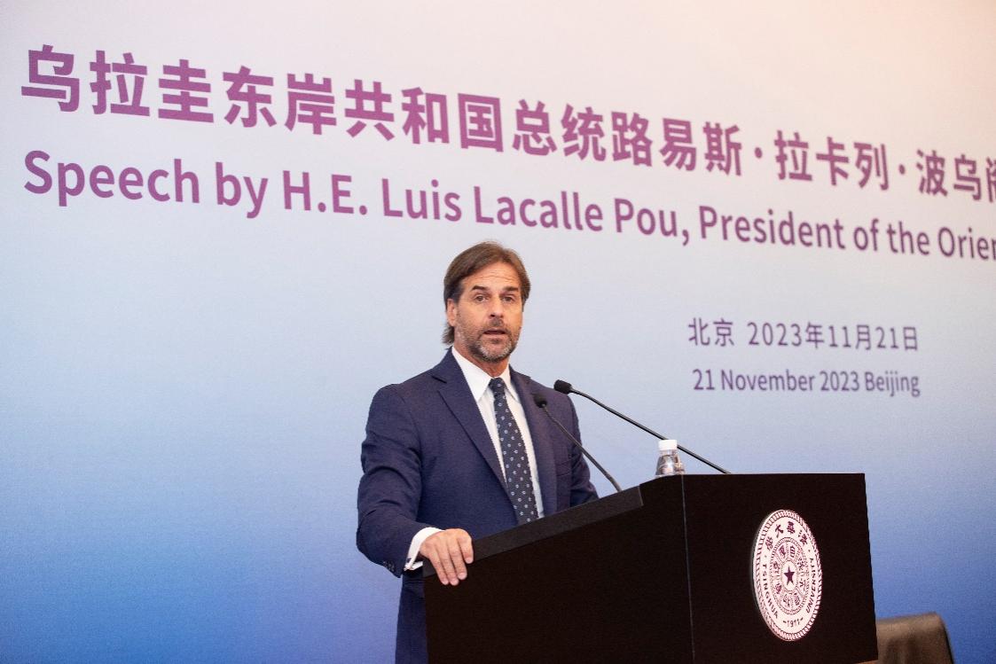 On November 21, Uruguayan President Luis Lacalle Pou visited Tsinghua University and delivered a speech. Tsinghua University President Wang Xiqin met with President Lacalle later the same day.