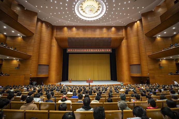 Xie Chuntao, vice president of the Party School of the CPC Central Committee (National Academy of Governance), delivered a report titled "The Communist Party of China and the Great Rejuvenation of the Chinese Nation" at the New Tsinghua Auditorium on December 10. Qiu Yong, secretary of the CPC Tsinghua University Committee, delivered a speech. Wang Xiqin, Tsinghua president and deputy secretary of the CPC Tsinghua University Committee and other university leaders attended the report meeting. Party members from across the University attended the report meeting in the main venue and branch venues.