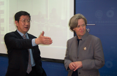 Prof. Shirley M. Tilghman, President of Princeton University visited Tsinghua University on Oct. 29. Tsinghua President Gu Binglin met and talked with Prof. Tilghman. Prof. C. N. Yang, the Nobel Prize Winner and honorary director of Center for Advanced Studies, Prof. Andrew Chi-chih Yao , Professor of Center for Advanced Studies, and Wen C. Fong, Chair Professor of Center for Advanced Studies attended the meeting.