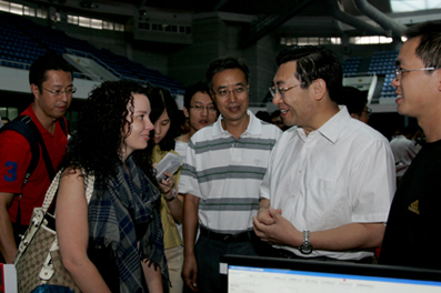 Tsinghua University President Gu Binglin and University Council Chairman Hu Heping together with  other university officials presided over a welcoming ceremony for 2009's new graduate students on the morning of September 4.