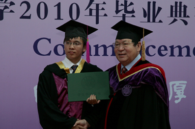In his commencement address, President of Tsinghua and Chairman of the degree Conferral Committee Gu Binglin extended his congratulations to the students. He noted that the students’ experiences in their four years at Tsinghua will be lifelong memories. He hoped that the students would bear Tsinghua mottos in mind, pursue excellence in their future study and work, and contribute to the development of the nation. “I hope you can develop a first-class career and become the backbone of China,” said the President.