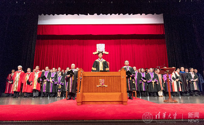 More than 1500 participants were present at the conferment ceremony, including Council Chairman of the Chinese University of Hong Kong Dr. Leung Nai-pang, and from Tsinghua University - Former President Gu Binglin, Vice President and Provost Yang Bin, Assistant President and Director of the Academic Affairs Office Peng Gang, and alumni representatives.