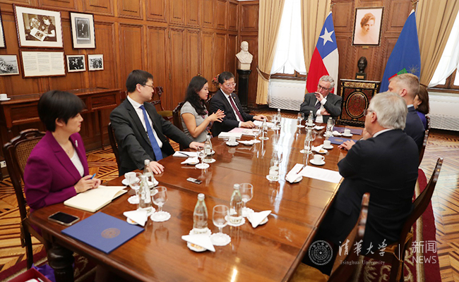 From December 5th to December 7th, Qiu Yong, President of Tsinghua University, led a delegation to visit Chile to promote educational cooperation and people-to-people exchange between Tsinghua University and Chile. In the meantime, Qiu Yong visited the Chilean Presidential Palace La Moneda and met with the Chief Advisor to the President of Chile Cristián Larroulet and Minister Secretary-General of the Presidency of Chile Gonzalo Blumel. President Qiu visited Universidad del Desarrollo, the Pontifical Catholic University of Chile, the University of Chile, and Universidad Andrés Bello, where he exchanged views with university presidents to promote educational cooperation between Tsinghua University and Chilean universities.