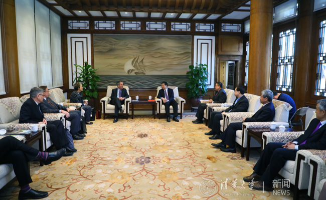 On March 21st, Professor Lawrence Bacow, President of Harvard University, visited Tsinghua University. Tsinghua University President Qiu Yong, Vice President and Provost Yang Bin, and the guests had a meeting at Gongziting.