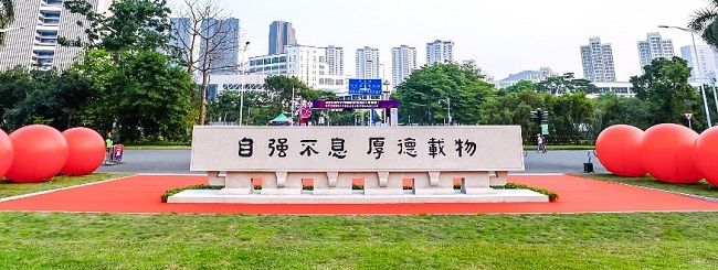 “A confident Tsinghua is a more open Tsinghua.” Flags marking Tsinghua‘s 108th Anniversary are seen on the Tsinghua SIGS campus in Shenzhen University Town.