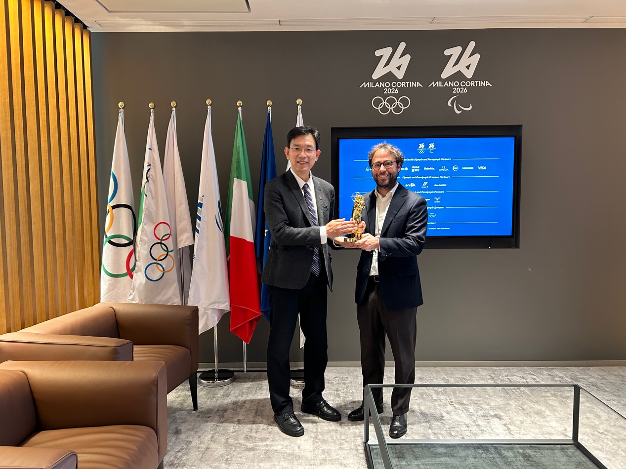 Li Luming (left) visits the Milano Cortina 2026 Organising Committee.