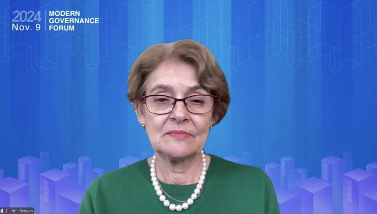 Irina Bokova delivers a keynote speech