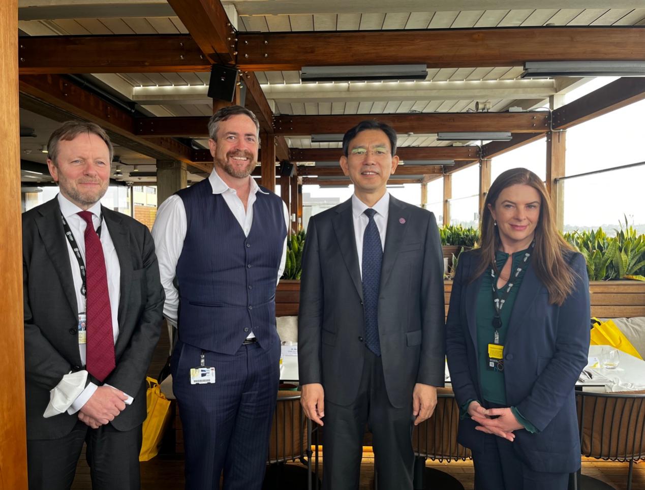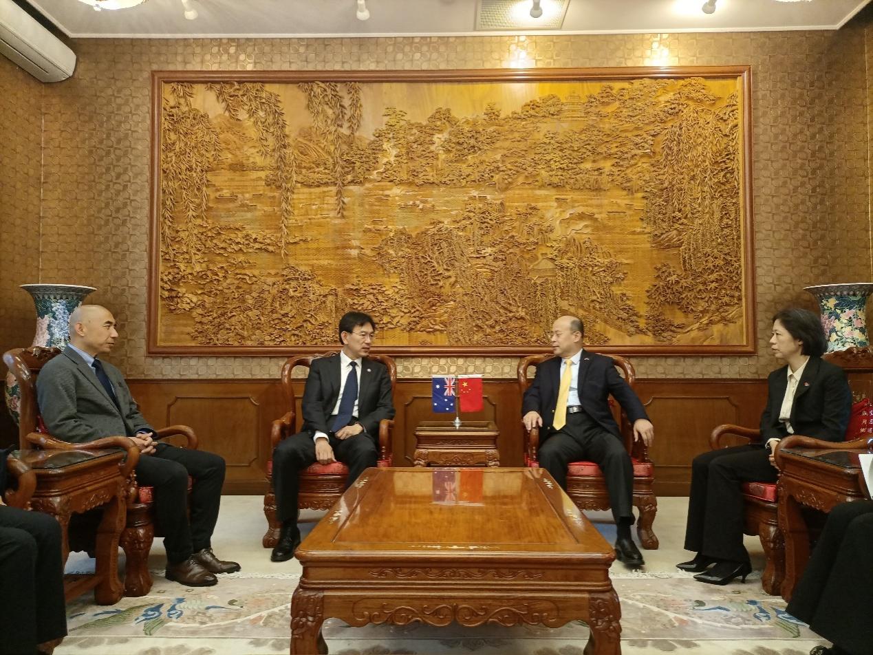 Li Luming (second left) communicates with Chinese Ambassador to Australia Xiao Qian.