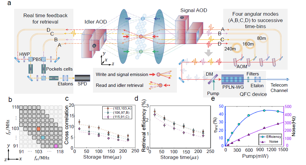 Additionally, via feedback on the arrival time of the heralding signals, this work can identity the corresponding memory cell and angular mode which has been excited, and perform readout operations on the entangled memory mode on demand. This ability for addressing and on-demand readout is an essential requirement for future quantum repeaters, but was rarely achieved in previous experiments due to the difficulty in the realization.