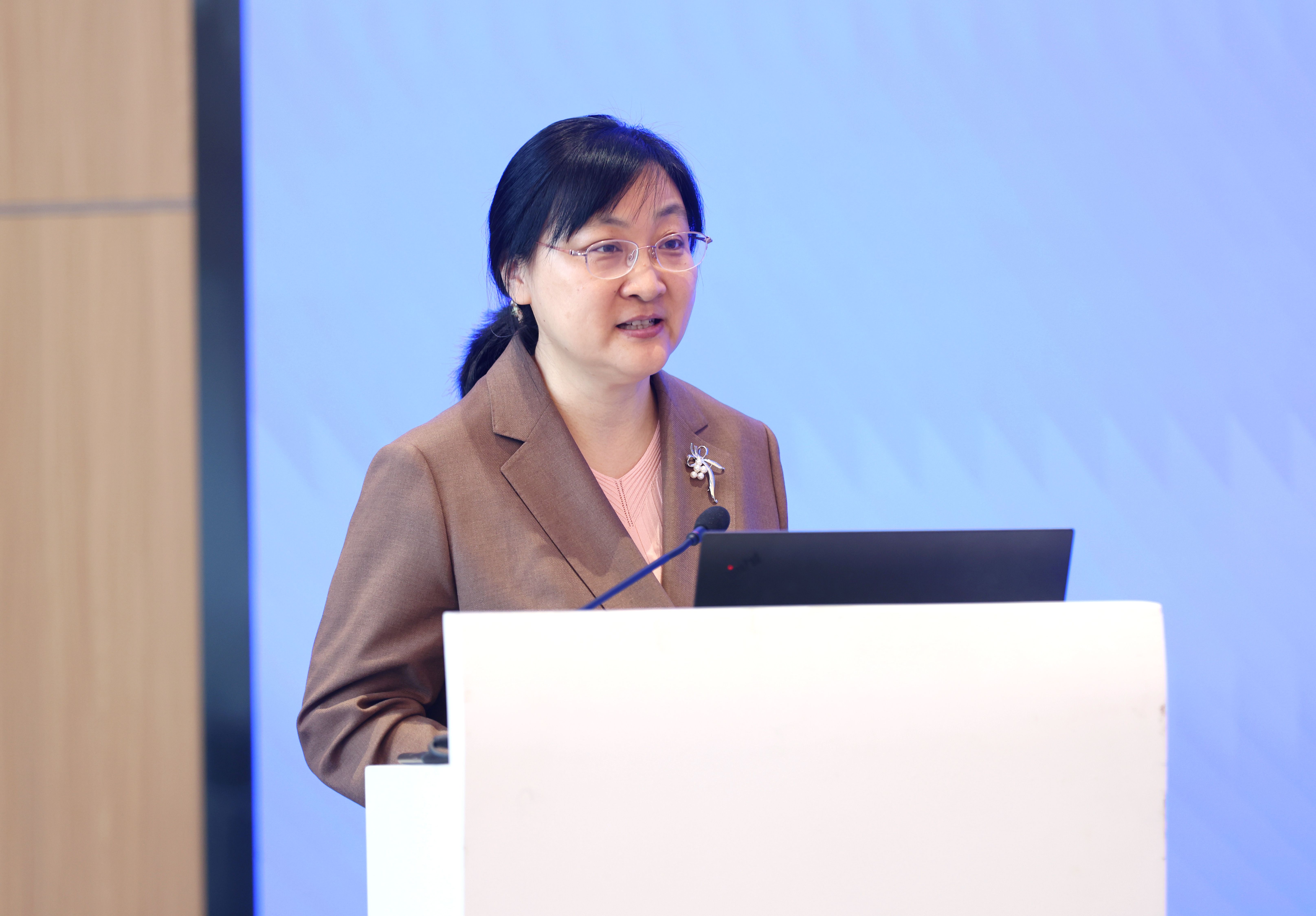 Bai Benfeng delivering a speech