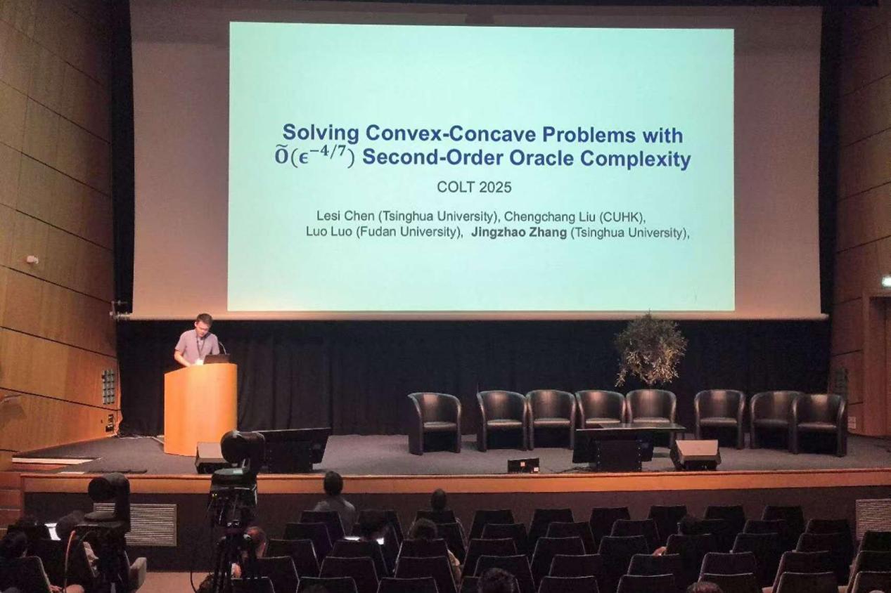 Ph.D. student Lesi Chen and Assistant Professor Jingzhao Zhang from Tsinghua University's Institute for Interdisciplinary Information Sciences have received the Best Student Paper Award at the 2025 Conference on Learning Theory (COLT), a top-tier venue in theoretical machine learning. Their winning work is titled "Solving Convex-Concave Problems with O( ε^-4/7) Second-Order Oracle Complexity".
