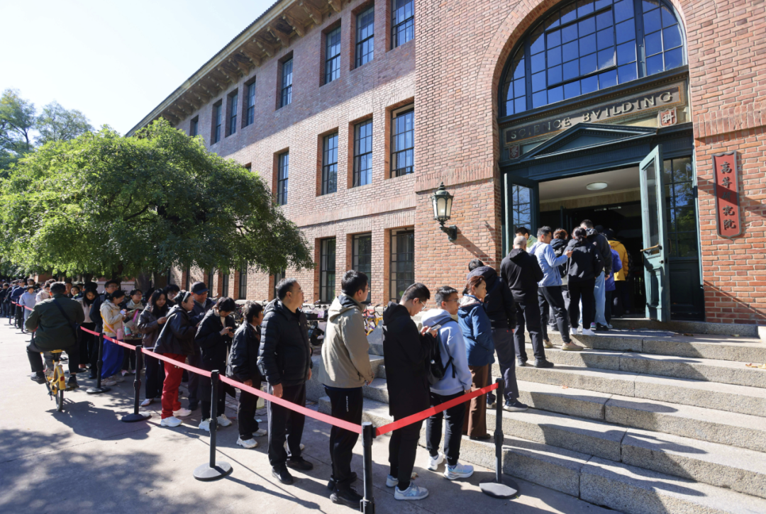 Faculty, students, and members of the public queue at Tsinghua University’s Science Building to pay their respects to the late Professor Chen Ning Yang.