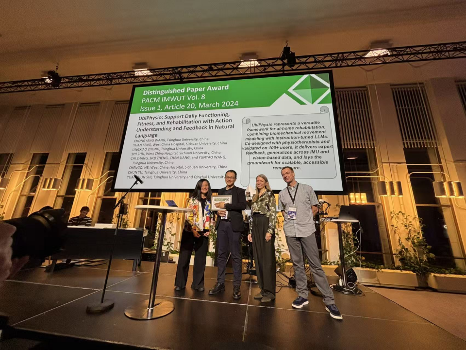 On October 15, a collaborative study conducted by Tsinghua University's Pervasive Human-Computer Interaction Laboratory, Sichuan University's West China Hospital Rehabilitation Medicine Center, and Sichuan University's Institute of Rehabilitation Medicine, titled "UbiPhysio: Support Daily Functioning, Fitness, and Rehabilitation with Action Understanding and Feedback in Natural Language," received the Proceedings of the ACM on Interactive, Mobile, Wearable and Ubiquitous Technologies (IMWUT) Distinguished Paper Award at the ACM International Joint Conference on Pervasive and Ubiquitous Computing (UbiComp 2025).