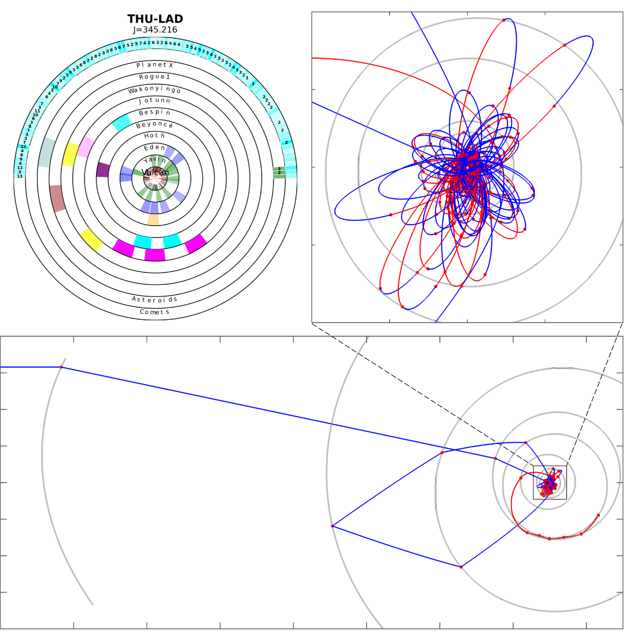 To tackle the complex problem related to the hybrid propulsion of solar sail propulsion and multiple planetary gravity assists, the team developed on the spot a novel intelligent trajectory design framework. This framework was used to efficiently search for the optimal solution among hundreds of millions of possible flight trajectories, ultimately working out an extreme exploration trajectory that flew over 150 celestial bodies. The solution trajectory received the highest score after the quantitative evaluation, ranking first in both the number of celestial bodies visited and the total scientific return.