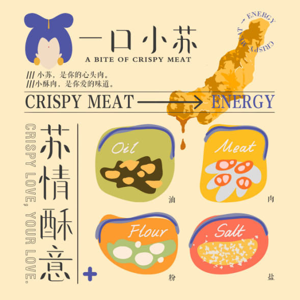 In Chinese, the word “crispy” is pronounced as the surname of Sudaji, and "A Bite of" conveys the lightness of the food.