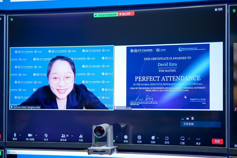On August 21, 2022, participants graduated from the pilot GEPC program, which is designed to equip global leaders with Chinese business acumen. Spreading over five months, the 16 live-virtual courses were perfectly suited to participants’ busy schedules and desire to collaborate and communicate with other professionals. Amidst the hundred-day journey, participants learned many aspects of business in a Chinese context, from economic development, digitization and marketing to innovation and investment. “If you want to become a global leader, you need to understand China. China is a profound book. Other’s notes cannot replace your own understanding. Be brave to face the competition and welcome the challenge,” said Professor Jizhen Li, Associate Dean of Tsinghua SEM, during the closing ceremony.