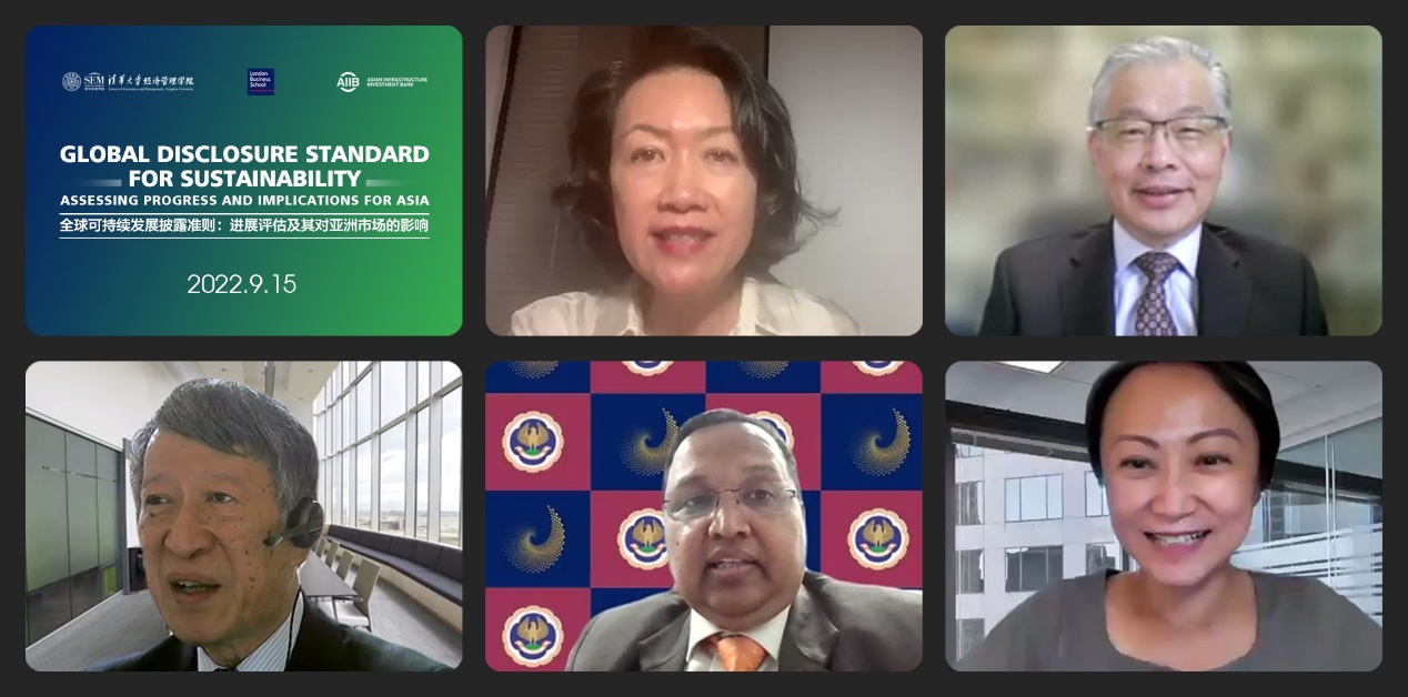 The Sustainability Forum 2022, hosted by Tsinghua University School of Economics and Management (Tsinghua SEM), London Business School (LBS), and the Asian Infrastructure Investment Bank (AIIB), was organized online by the Institute for Global Development at Tsinghua University (Tsinghua IGD) on September 15, 2022.