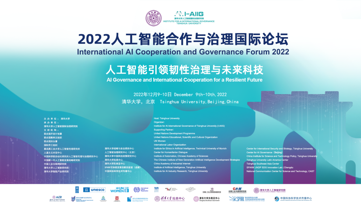 The International AI Cooperation and Governance Forum 2022, under the theme of “AI Governance and International Cooperation for a Resilient Future”, hosted by Tsinghua University and organized by the Institute for AI International Governance of Tsinghua University, is going to take place during 9th-10th, December 2022. The forum aims to promote AI to provide new momentum for and unleash the potential of scientific innovation and industrial development, to make global growth more inclusive, resilient, and sustainable for the common well-being of humanity, and a community with a shared future for mankind.