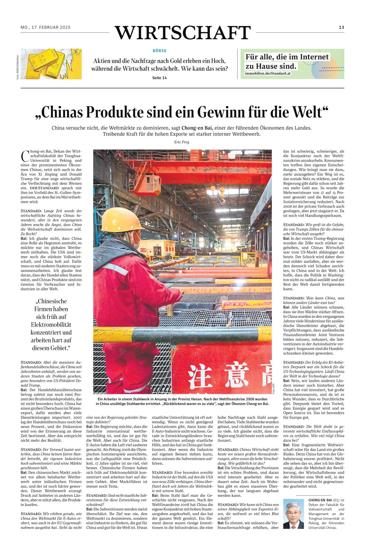 Bai Chong-En, dean of the School of Economics and Management at Tsinghua University in Beijing and one of China's most prominent economists, continues to advocate for close economic ties with the West, even in the era of Xi Jinping and Donald Trump. Der Standard spoke with him ahead of the St. Gallen Symposium, which Bai will attend in May.
