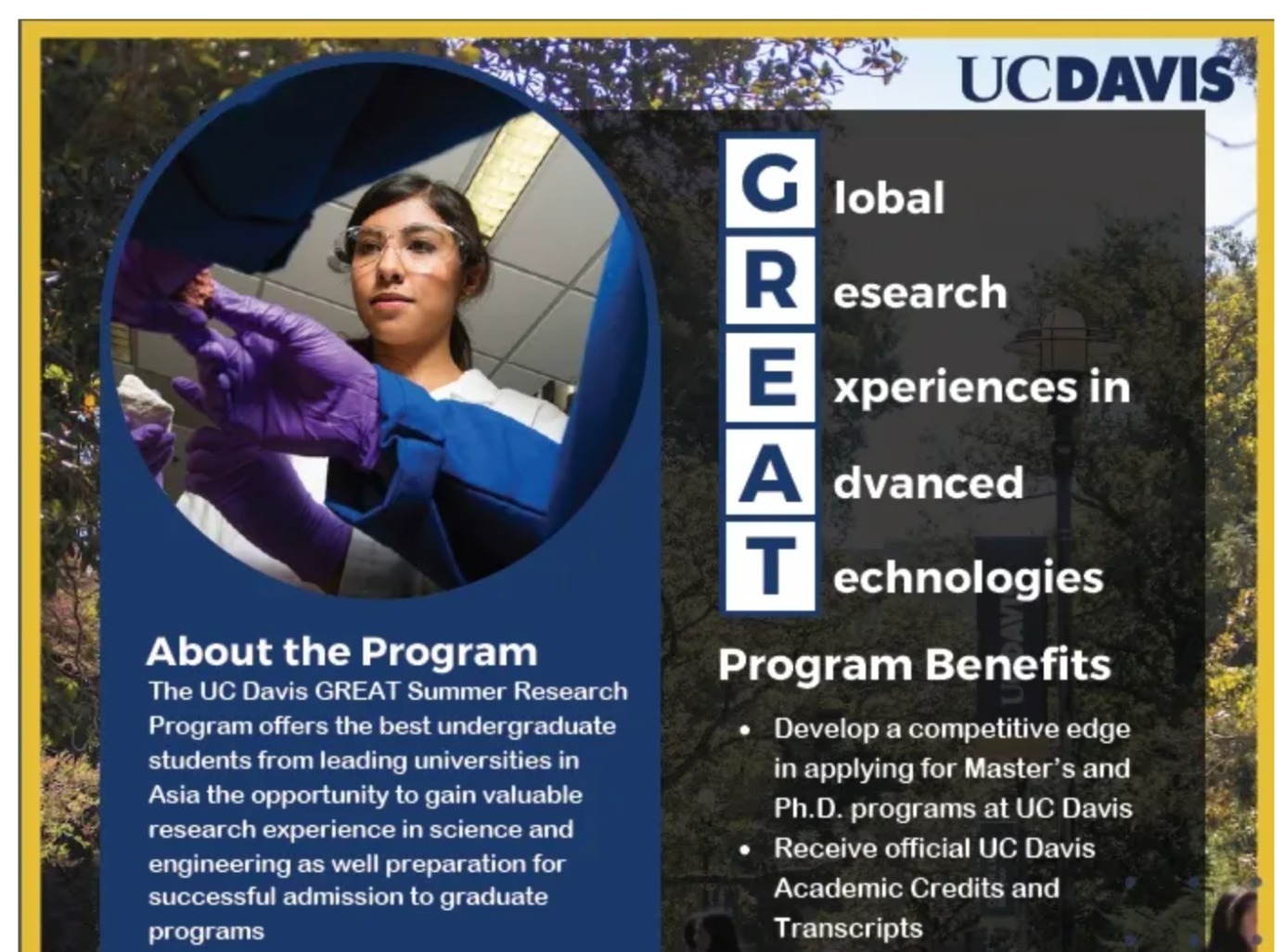 项目信息 | 2025年美国加州大学戴维斯分校暑期实验室研修项目