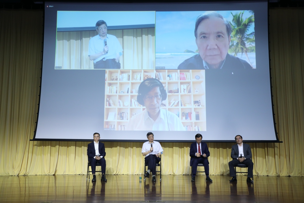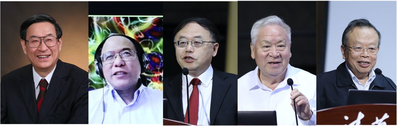 葛墨林、文小刚、施郁、顾秉林、朱邦芬(从左至右)讲述杨振宁先生的重要贡献