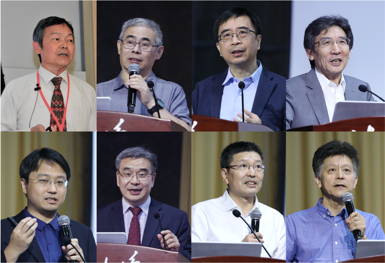 赵午、孙昌璞、潘建伟、薛其坤、翟荟、赵振堂、毛淑德、汤超(从左至右、从上至下)分享前沿物理领域的重点研究成果