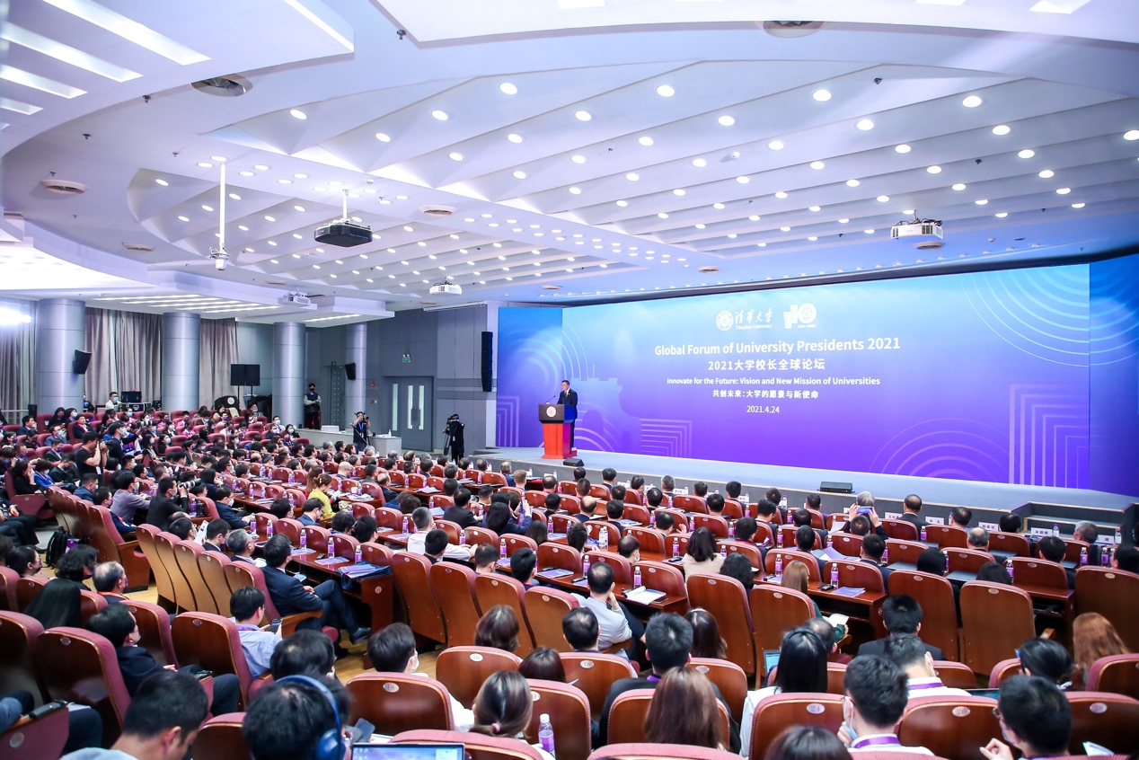 邱勇从三个角度分析了本次论坛的历史语境。“首先,我们当前并在未来持续面临的全球挑战是严峻且紧迫的,经过这次疫情大考,我们意识到应对如此强度的挑战所需的努力之艰巨,也意识到必须更紧密的合作才能战胜未来的挑战。其次,大学是人类历史中最长久的机构之一,大学教育在走近千年里程碑。第三,清华正在纪念建校110周年。这是追溯往昔、审视当下、展望未来的美好时刻,也是与全球伙伴共同庆祝合作成就的历史性时刻。”他强调,三个视角赋予了今天的论坛独特的现实意义,即在“行胜于言”格言的感召下,以线上线下融合的创新形式共聚一堂,拥抱领导力赋予的责任;在服务社会的使命召唤下共同定义大学的愿景与新使命。