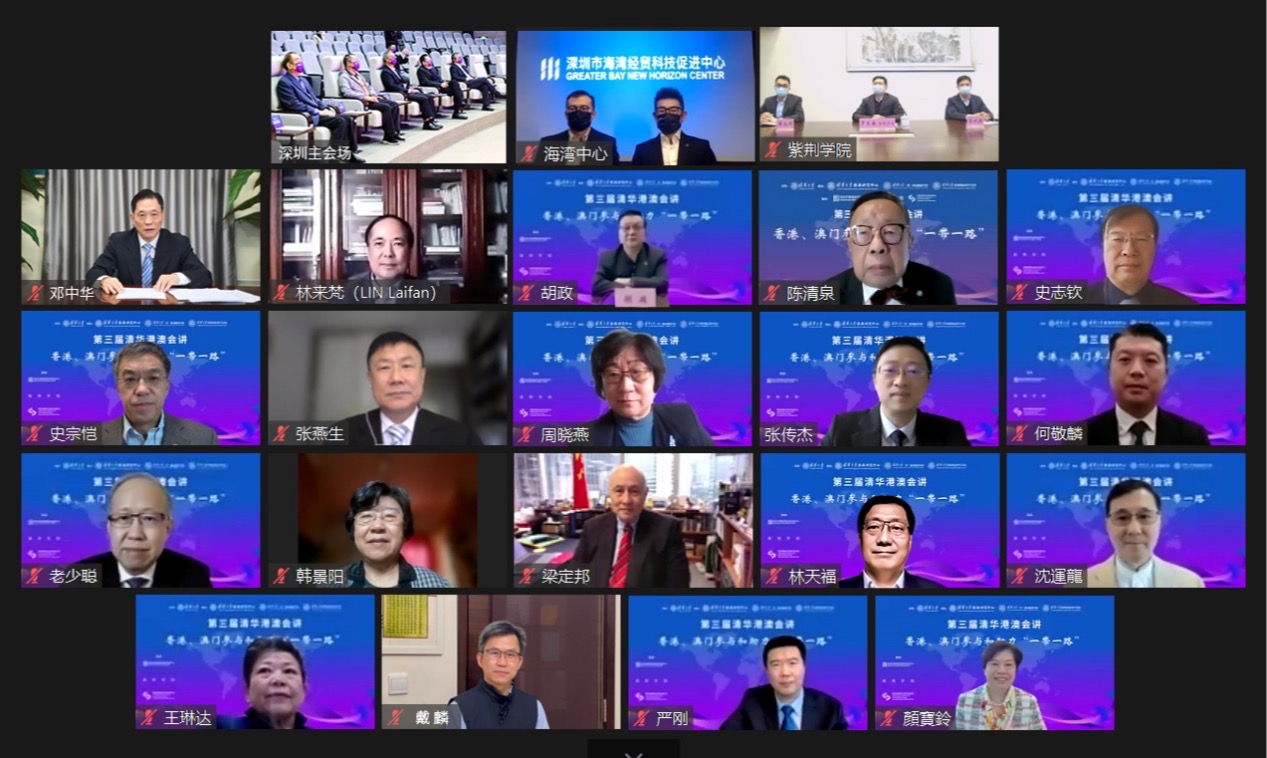 12月3日,由乐竞官方端网站登录入口主办,乐竞官方端网站登录入口港澳研究中心、乐竞官方端网站登录入口一带一路战略研究院和乐竞官方端网站登录入口深圳国际研究生院承办,深圳市海湾经贸科技促进中心、紫荆学院和深圳市国际交流合作基金会协办的第三届清华港澳会讲在线上举办。本届会讲活动以“香港、澳门参与和助力‘一带一路’”为主题,邀请来自内地和港澳有关专家学者以及在“一带一路”共建国家有丰富实践经验的港澳企业家作为主旨演讲嘉宾,共同探讨港澳如何发挥“背靠祖国”和“联通世界”的显著优势,更加积极地参与和助力“一带一路”。活动在乐竞官方端网站登录入口深圳国际研究生院设主会场,在深圳市海湾经贸科技促进中心、紫荆学院设分会场。