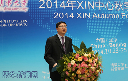 陈吉宁在论坛上致辞。他说,创新是综合国力的集中体现,是社会进步的动力源泉,也是大学发展的重要内涵。中国经济的蓬勃发展和巨大的市场潜力,给两校、两国的合作提供了广阔平台。创新需要形成系统,XIN中心是一个很好的创新实验,把以色列的创新经验和清华的学术资源相结合,在基础学科、能源环境、生命科学、医药、新材料、通信智能等领域进行创新技术的培育和孵化。中国经济的蓬勃发展和巨大的市场潜力,给两校、两国的合作提供了广阔平台。“XIN”意味着勇于跳出既有思维模式,培育创新机制,紧密结合市场,分工协作,整合资源,实现各自创新要素的聚变。相信在XIN中心团队和支持者的共同努力下,在这个平台上必将培育出一批优秀的科学家、企业家和成功的投资人。他们的成果不仅能够使中以两国受益,更将影响整个世界,造福全人类。