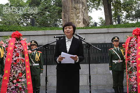 校党委书记陈旭代表全校师生员工向烈士们致以最崇高的敬意和表达最深切的缅怀。她在讲话中说,设立烈士纪念日,对于培养全体人民特别是广大青年的爱国主义、集体主义精神,培养社会主义核心价值观,增强中华民族的凝聚力,激发实现中华民族伟大复兴中国梦的强大精神力量,具有重要而深远的意义。在献身民族解放和人民民主革命的英烈中,有一批优秀的清华儿女,他们以为国捐躯的英雄行动,为我们树立了精神典范,成为千千万万清华人的优秀代表。
