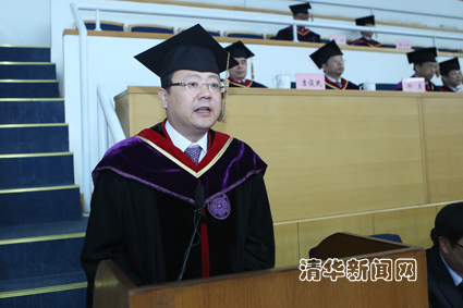 在热烈的掌声中,校长陈吉宁发表了题为《勤思善言笃行》的讲话。陈吉宁代表学校,向毕业生表示衷心祝贺,并向对同学们给予悉心教导和关怀的各位老师、亲友致以诚挚的敬意。陈吉宁在讲话中指出,清华是培养君子的地方,君子“讷于言而敏于行”、“耻其言而过其行”,行胜于言是每一名清华人的内在品质。