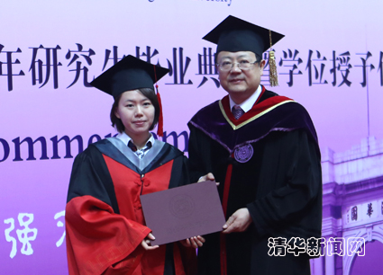 图为陈吉宁为毕业研究生颁发学位证书。记者 智 斐 摄