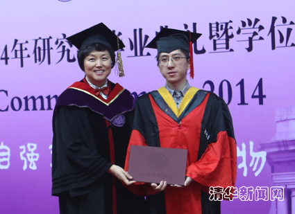毕业生代表、物理系博士生张金松与大家分享了自己在清华十年学习科研生活的感悟。他以自己参与发现量子反常霍尔效应的科研经历为例,与大家分享了科研中面临挑战与困难时坚持不懈取得成就的心得体会。