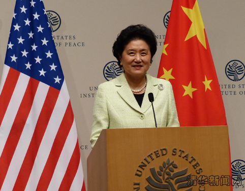图为中国国务院副总理刘延东发表题为《开创中美人文交流新境界》的重要演讲。