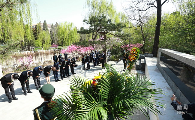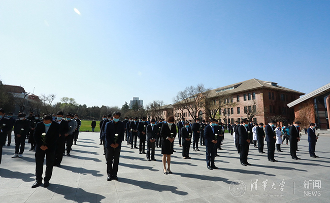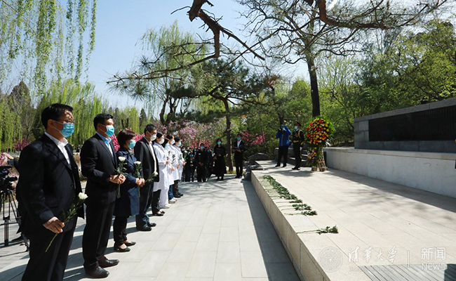 校党委书记陈旭代表全校师生员工,向为抗击新冠肺炎疫情而牺牲的烈士、逝世的同胞表示沉痛的哀悼,向在民族独立和人民解放斗争中光荣献身的清华英烈致以深切的缅怀。陈旭表示,无论是历史上的清华英烈,还是今天的抗疫烈士,都是祖国的优秀儿女,都是用坚守书写誓言,用生命诠释担当。他们的英雄气概代代相传,他们的崇高精神万古长青!