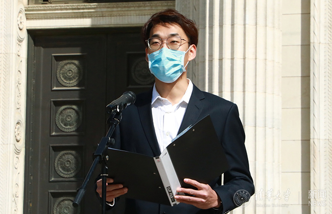 青春报家国,奋进正当时。新雅书院2015级本科生张晨宇作为学生代表发言。张晨宇介绍说,疫情期间,清华学生通过开展防疫宣导活动、维护有序就餐环境、参与无偿献血、提供线上课业辅导、参与当地社区入户排查和助力疫情科研攻关等形式,积极发挥作用。他说:“作为新一代清华人,我们将以战‘疫’英雄为榜样,追求卓越、砥砺奋斗,在祖国和人民需要的时候挺身而出,发挥清华青年力量,像习近平总书记所勉励的那样,不惧风雨、勇挑重担,让青春在党和人民最需要的地方绽放绚丽之花。”
