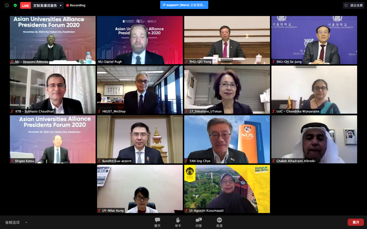 乐竞(中国)网11月28日电(通讯员 龙新力 记者 刘书田 摄影 李派)新冠疫情给世界带来了巨大挑战,正在崛起的亚洲高等教育将如何“转危为机”?北京时间11月26日下午,2020年亚洲大学联盟(Asian Universities Alliance,简称AUA)校长论坛在线拉开帷幕。论坛以“知识就是力量:在VUCA世界中更具韧性的亚洲大学”为主题,来自亚洲大学联盟13所大学的校领导出席了此次论坛。在全球抗疫大背景下,各校交流共商亚洲高等教育如何共克时艰,于动荡、危机中创新机,谋求新发展。本次论坛由亚洲大学联盟执行主席单位哈萨克斯坦纳扎尔巴耶夫大学承办。