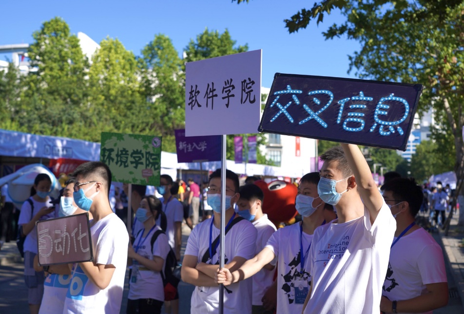 在踏入校门的那一刻起,新生们便要完成独立入校报到的必修课。在疫情防控常态化要求下,送新生的车辆和亲友不能入校,首先迎接他们的便是学生志愿者。不论是接站服务,还是完成报到手续,不论是行李搬运,还是食堂就餐,到处都有学长学姐们热情的身影。