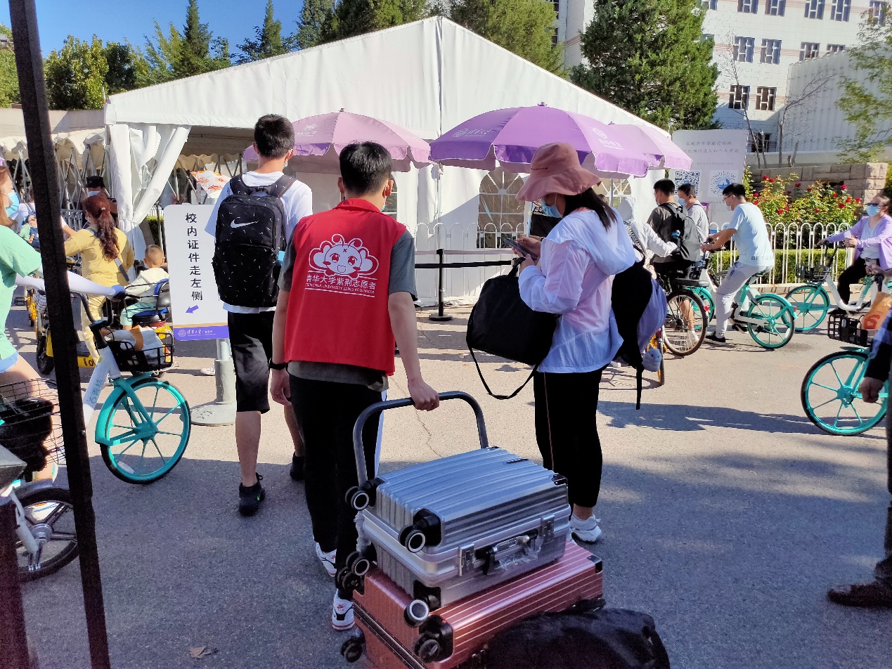 晨光熹微,迎新志愿者们在北京站、北京西站、北京南站、首都机场、大兴机场早已等候多时,热情迎接一张张满怀无限憧憬的新面孔。在疫情防控常态化要求下,送新生的车辆和亲友不能入校,满载新生的班车抵达紫荆学生公寓区。鲜艳的红色拱门,主干道上迎风招展的彩旗,各院系憨态可掬的吉祥物,清晰醒目的指示牌,精心设计的2020清华新生手册……都在一一诉说着秋日里醇厚的祝福与希冀,向园子的新主人发出最温暖的问候:“欢迎你,零字班!”