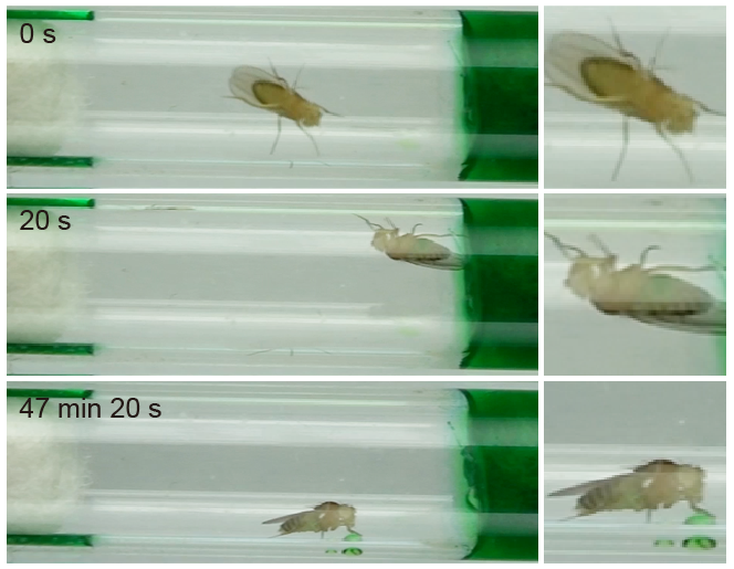 图1.自由活动的果蝇在进食黄连素溶液后发生呕吐
