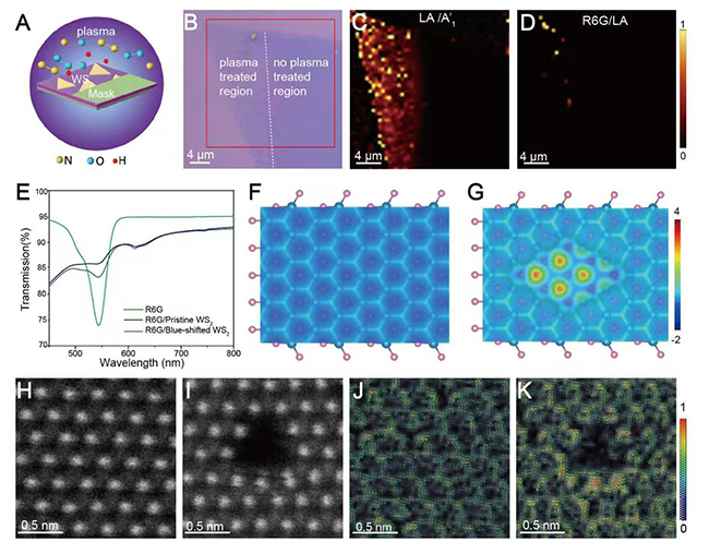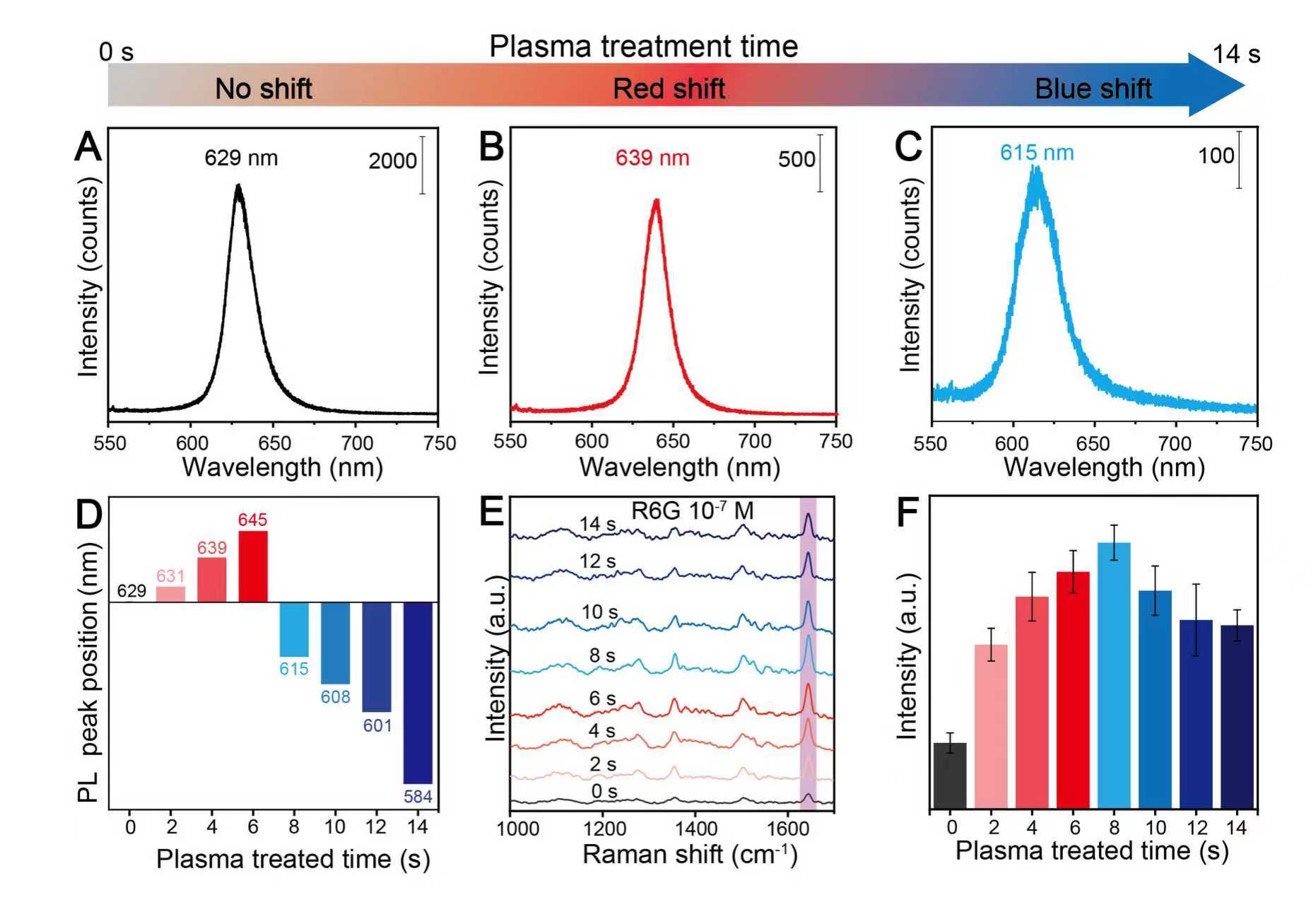 图1.等离子体处理WS2的带隙调控及SERS性能