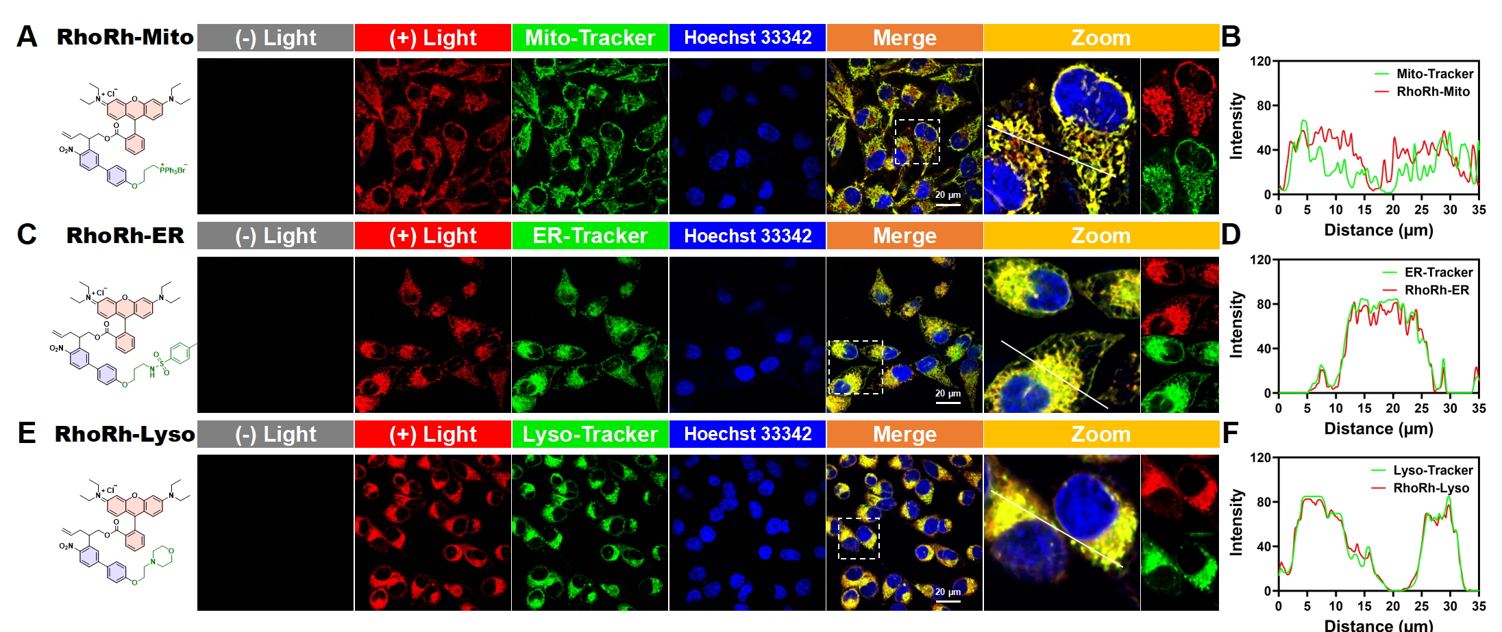 图2.PhoRh在HeLa细胞中的亚细胞定位成像