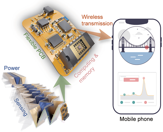 研究成果以“基于二维材料的折纸式自供能近传感计算系统用于形变监测”(Origami self-powered near-sensor computing system using 2D materials for deformation monitoring)为题,于9月17日发表于《器件》(Device)。