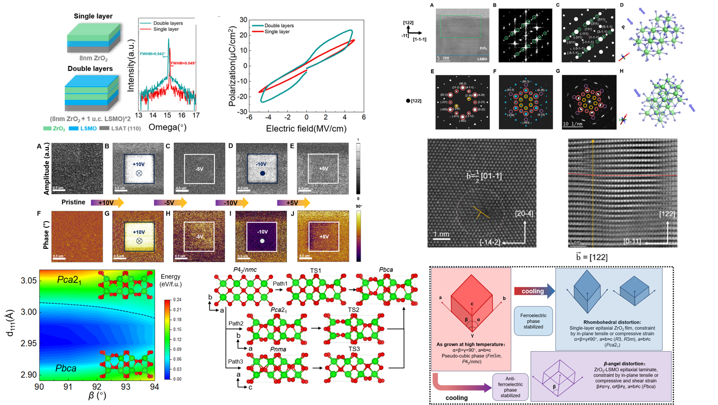研究成果以“ZrO2-LSMO叠层结构中β角畸变诱导的反铁电性”(β-angle distortion stabilized antiferroelectricity in engineered ZrO2-LSMO laminate structure)为题,于10月18日在线发表于《先进材料》(Advanced Materials)。