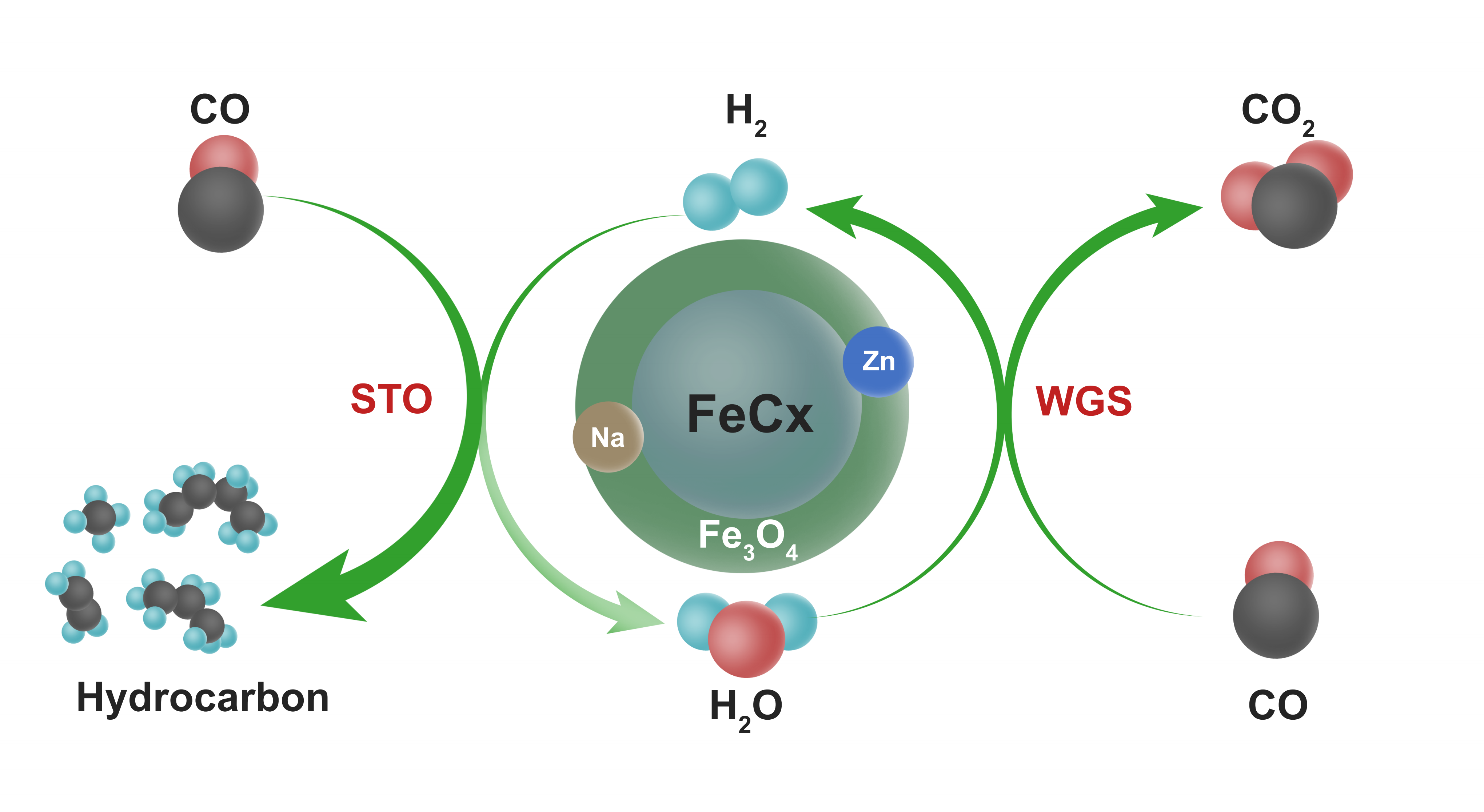 在水煤气变换(WGS)与合成气制烯烃(STO)的耦合作用下,氢原子经济性和烯烃收率都得到提升