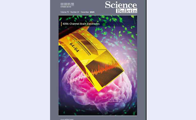 研究成果以“NeuroCam:基于柔性薄膜晶体管阵列的4096通道植入式高通量脑机接口器件”(High-resolution spatial mapping of electrocorticographic activities with NeuroCam: a 4096-channel, multiplexed flexible thin-film transistor array)为题,于11月17日发表于《科学通报》(Science Bulletin),并被选为期刊内封面(inside cover image)。
